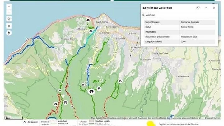 L’ONF Réunion a mis une nouvelle interface en ligne pour connaître quels sont les sentiers et les routes forestières fermées et ouvertes dans l’île.