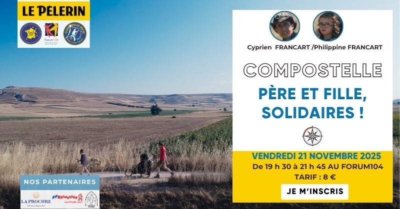 Conférence “Compostelle père et fille, solidaires ! “ Vendredi 21 novembre 2025 au Forum 104 de 19h30 à 21h45