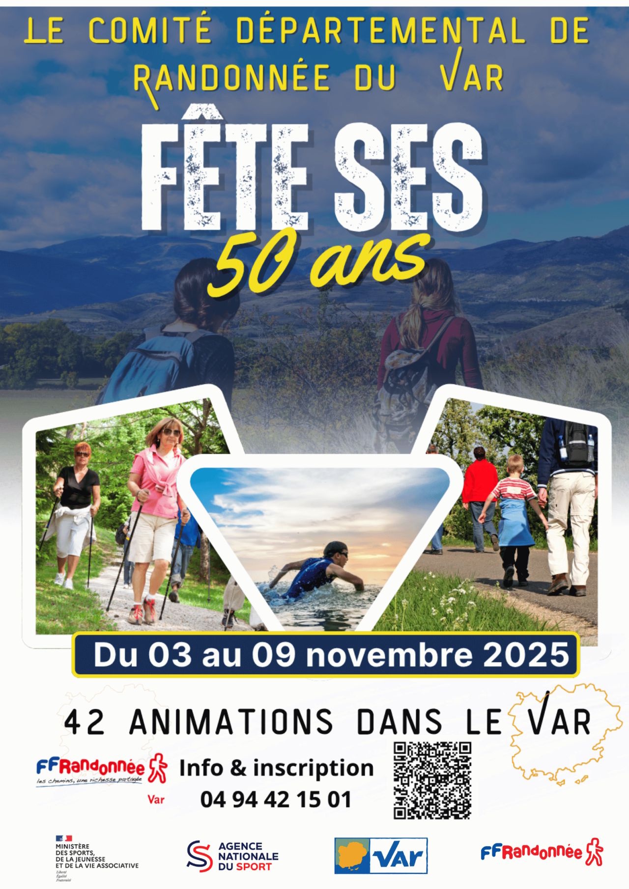 Du 3 au 9 novembre 2025, 41 animations ouvertes à tous sont prévues sur tous les secteurs du Var (randonnées, initiations longe-côte, randos santé, initiations marche nordique, initiations Bungy Pump...)