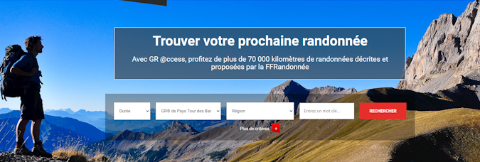 On peut ensuite rechercher un parcours selon différents critères (la durée, la difficulté, l’environnement, la région, par nom de GR® ou par mot-clef) ou directement avec la carte interactive.