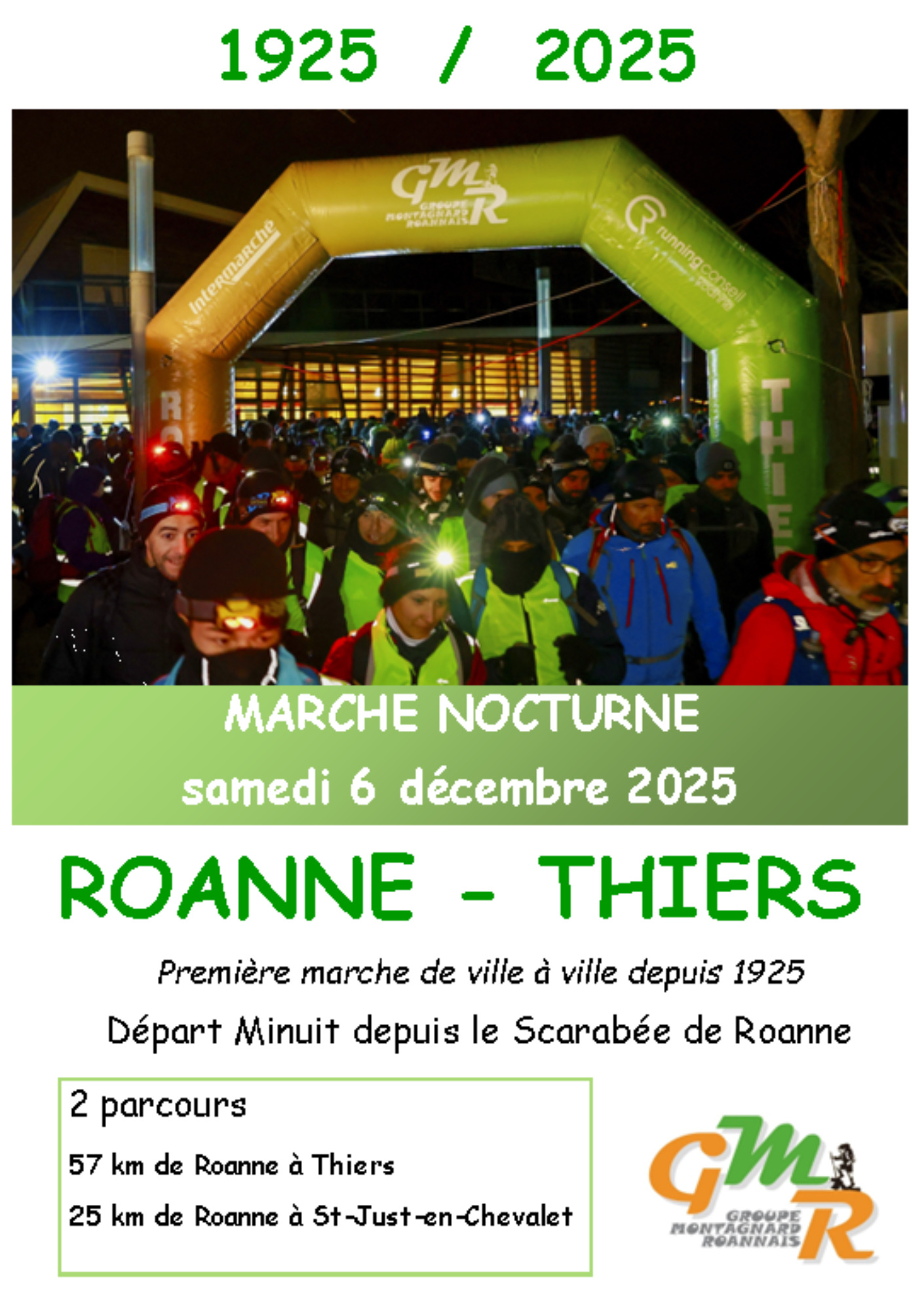 - 25 km de Roanne à St-Just-en-Chevalet Départ Minuit le samedi 6/12/25, depuis le Scarabée.