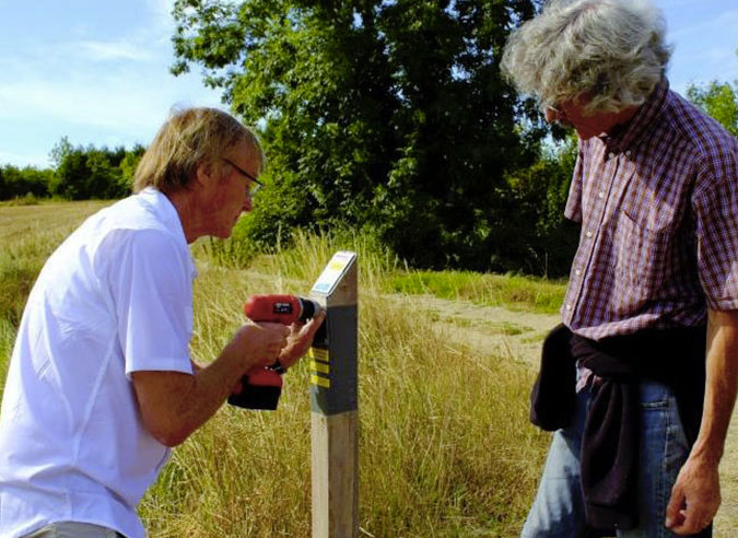 Reportage photo : une équipe de baliseurs sur le chemin de Petite randonnée, le Grand Tour de Villebon. Un grand ciel bleu, une température clémente, les conditions idéales pour une journée de balisage sur un circuit de randonnée de l’Essonne.