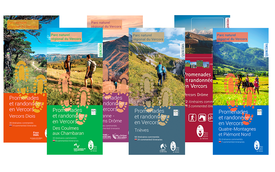 Les six carto-guides du Parc naturel régional du Vercors recensent entre autres les sentiers de petite randonnée, balisés en jaune et vert.
