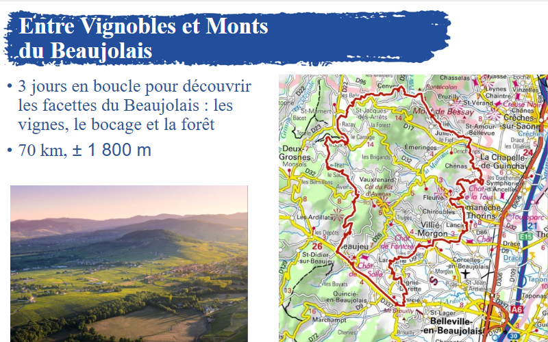 Entre Vignobles et Monts du Beaujolais, 3 jours – 70 km au départ de Beaujeu, capitale historique du Beaujolais