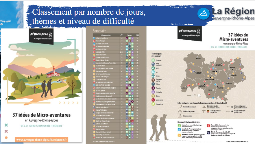 Dans le souci de promouvoir le tourisme durable, le comité FFRandonnée Rhône-Alpes a publié un recueil de 37 micro-aventures téléchargeables.